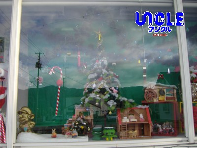 アンクルのウィンドウは11月のはじめからクリスマスです。