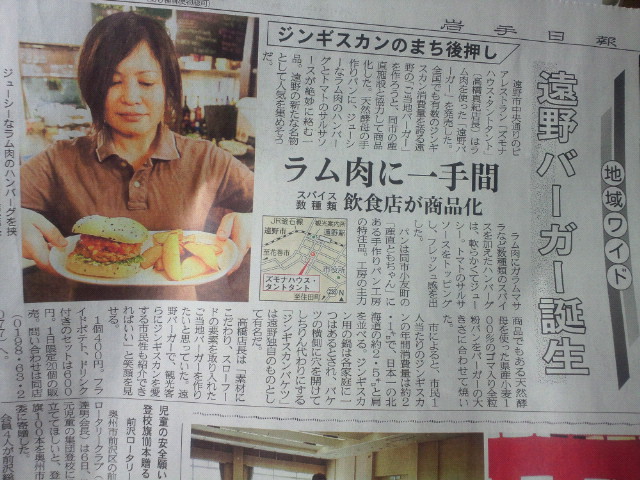 遠野バーガーが岩手日報で紹介されました。
